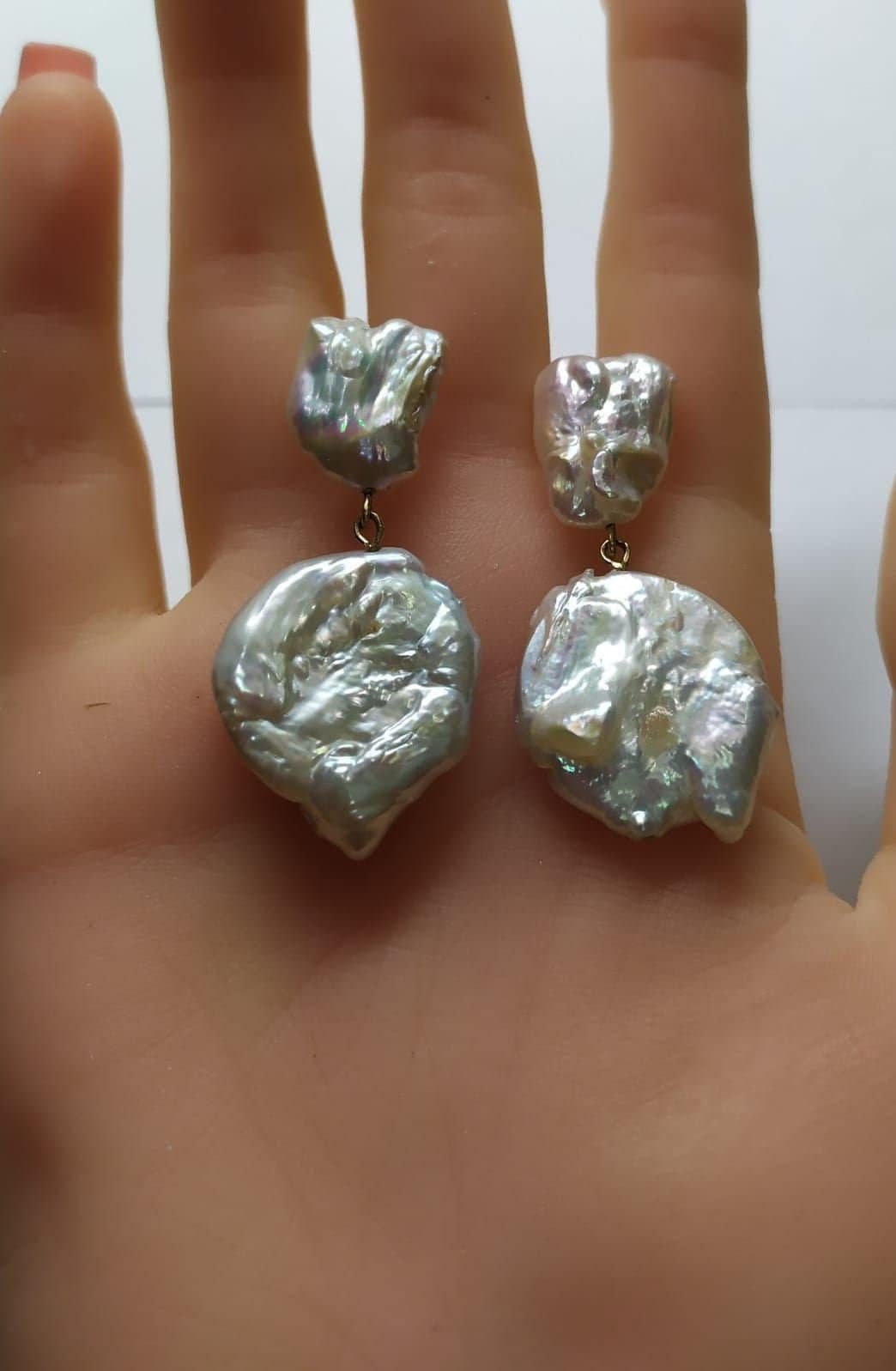 עגילי פנינים בארוק מקוריים. פנינים ענקיות בגודלן.