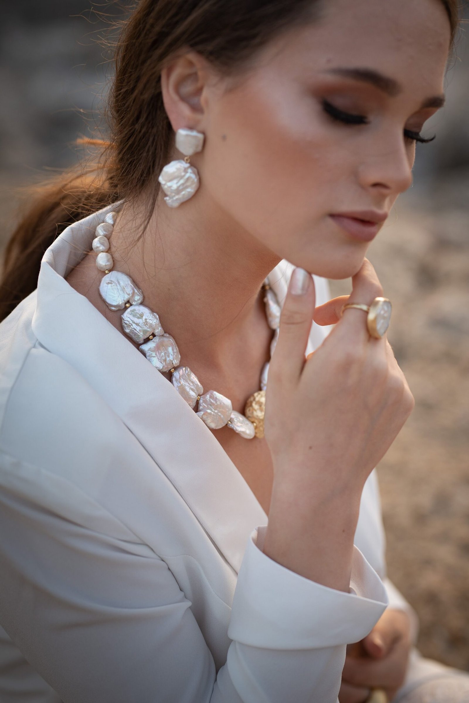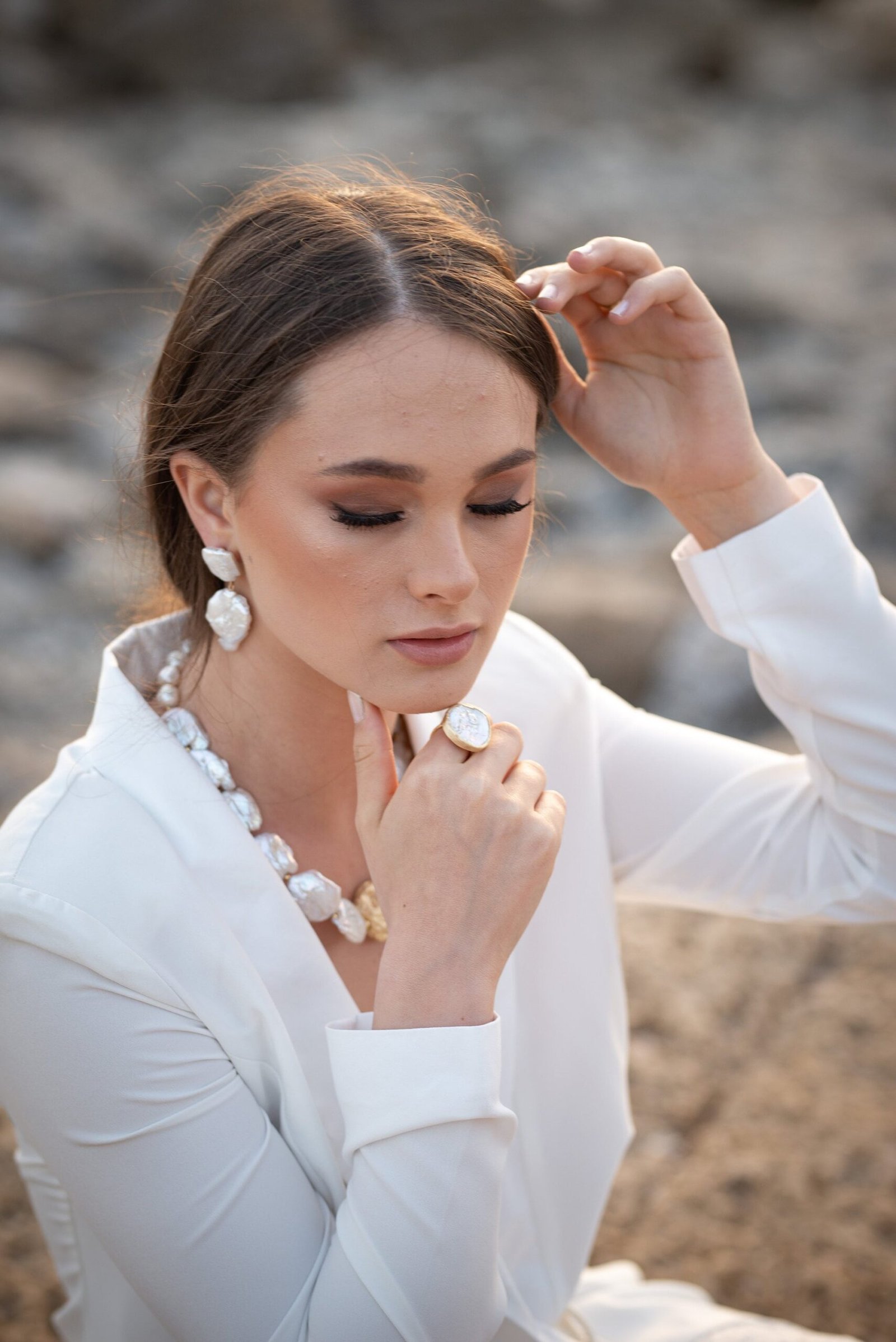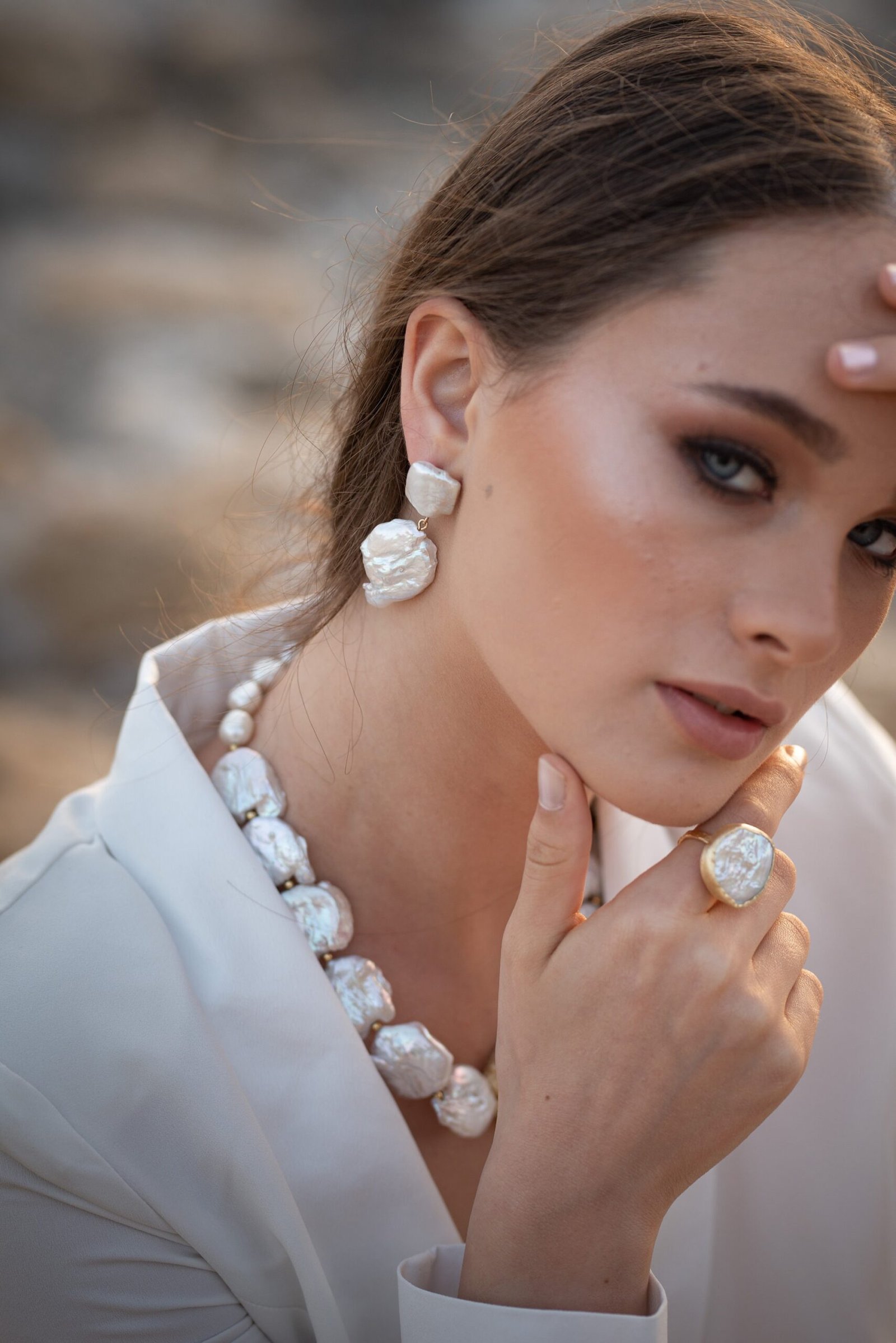 עגיל מפנינה פראית. זהו עגיל במראה עשיר מתאים לכל אירוע