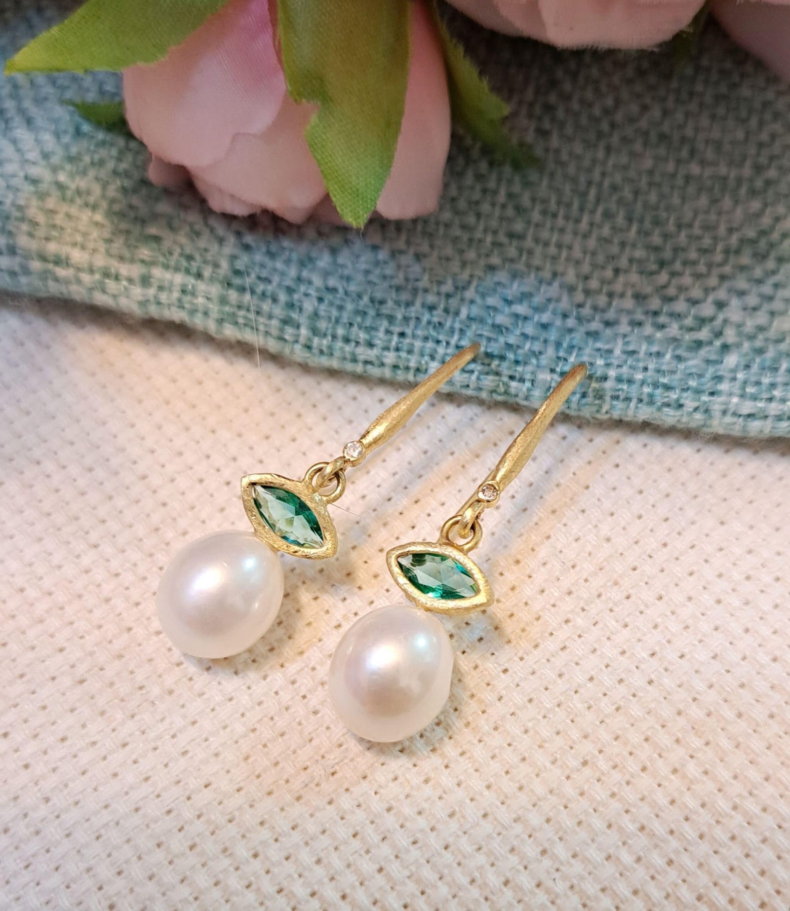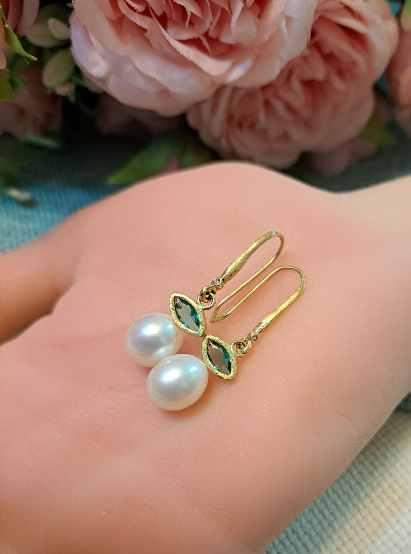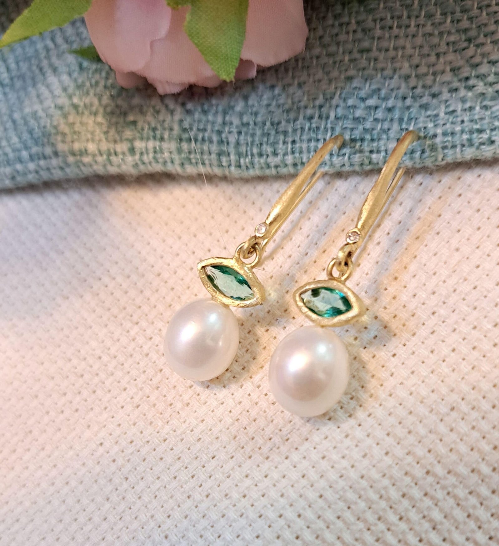 עגילי פנינה אופנתיות , מתנדנדות ,בשילוב זירקון בצורת עיין