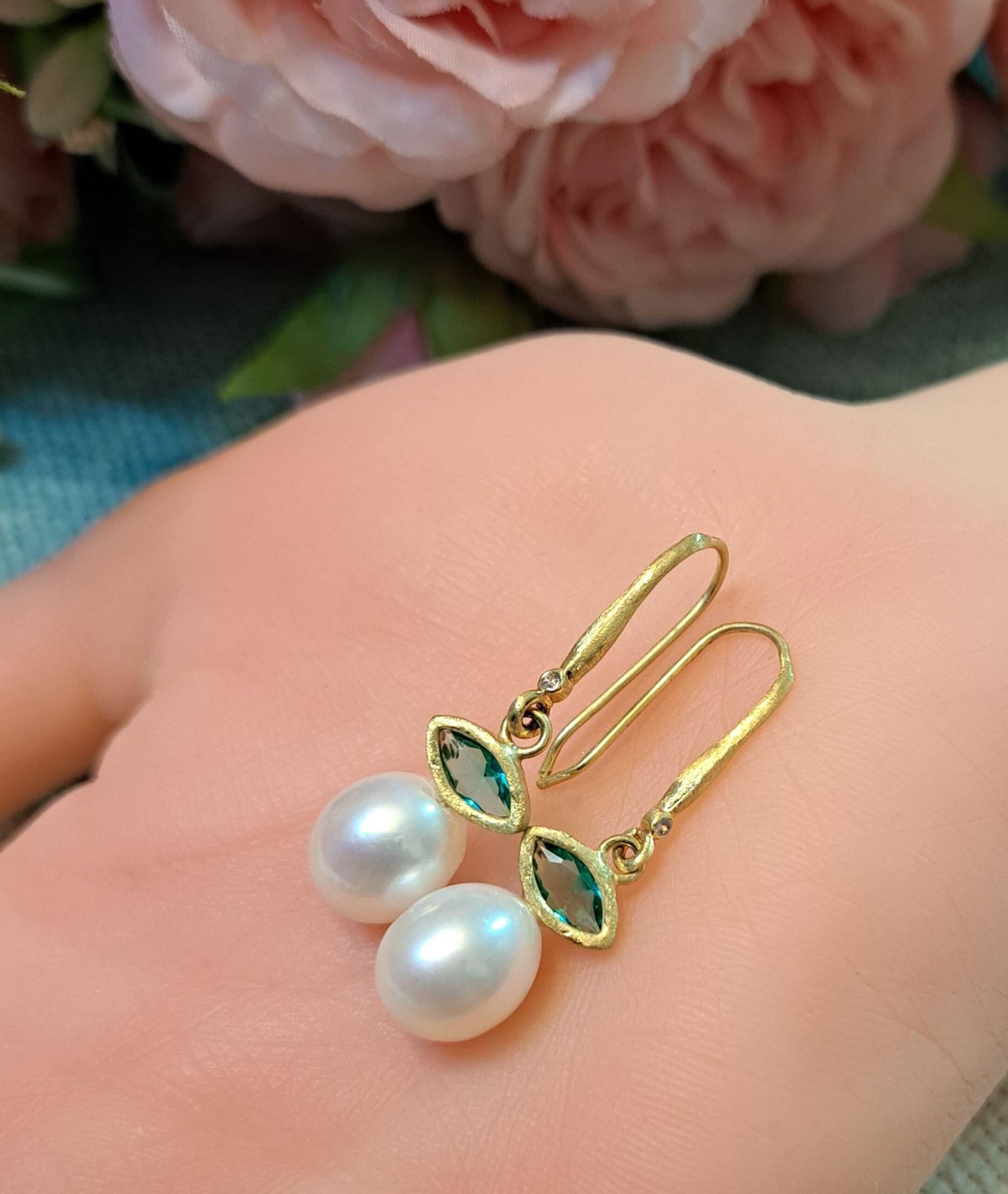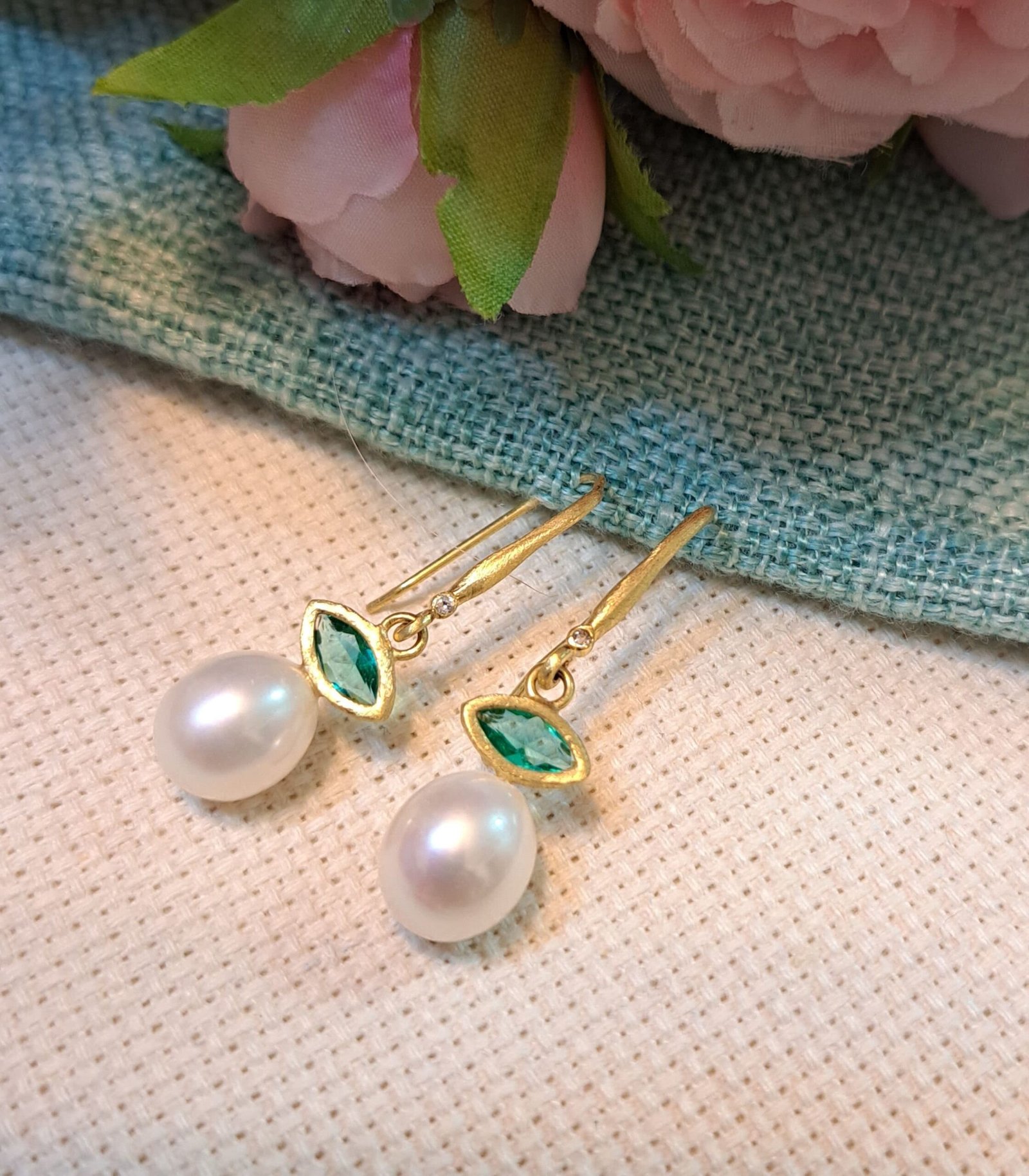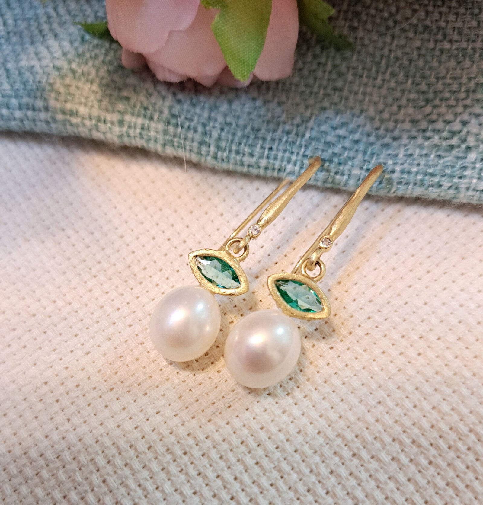 עגילי פנינה אופנתיות , מתנדנדות ,בשילוב זירקון בצורת עיין