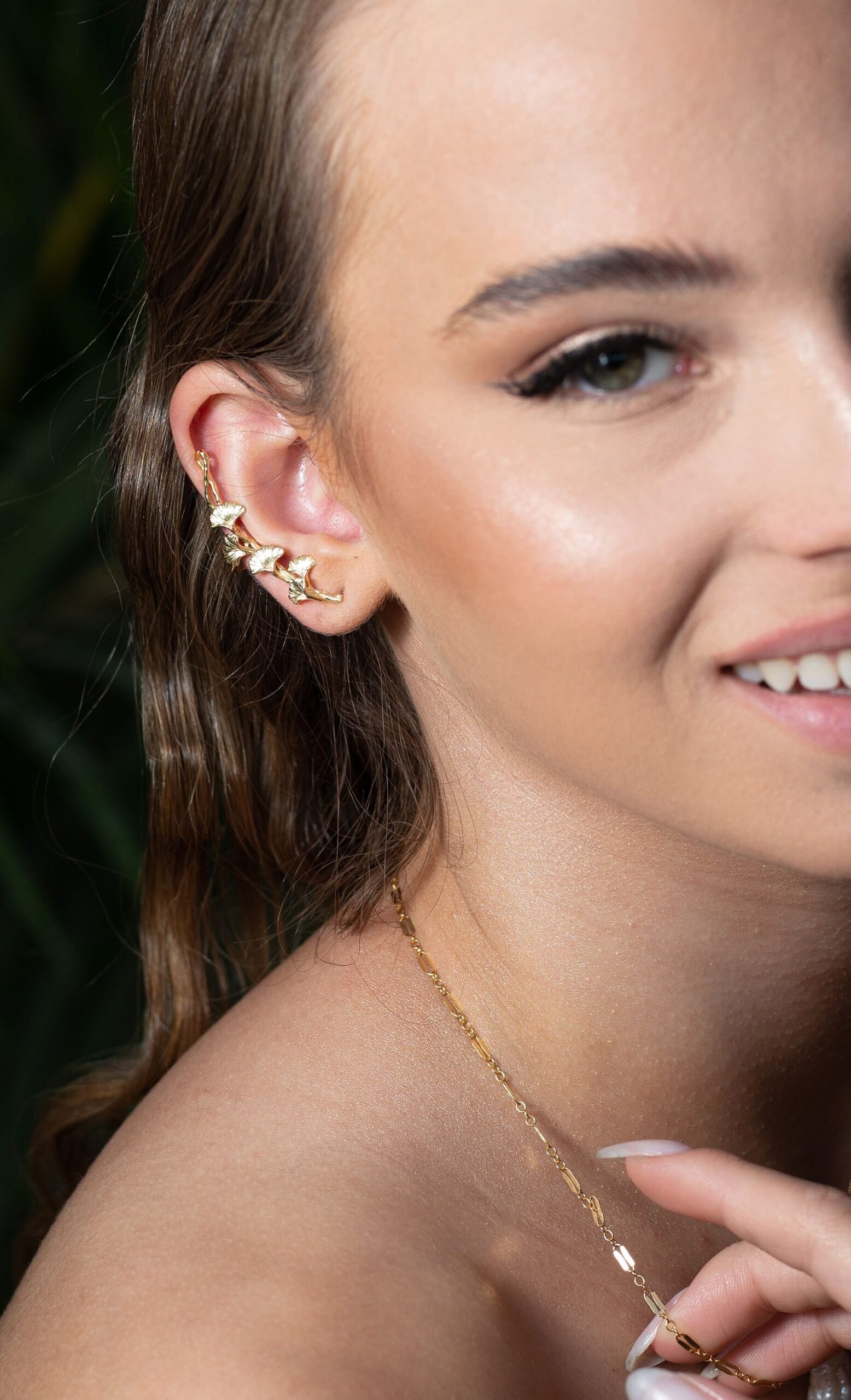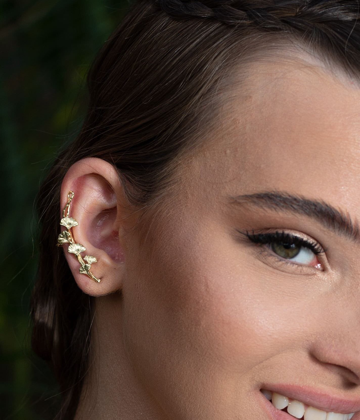 עגיל מטפס עלי גינקו בעבודת יד יפהפה בציפוי זהב 18 קראט
