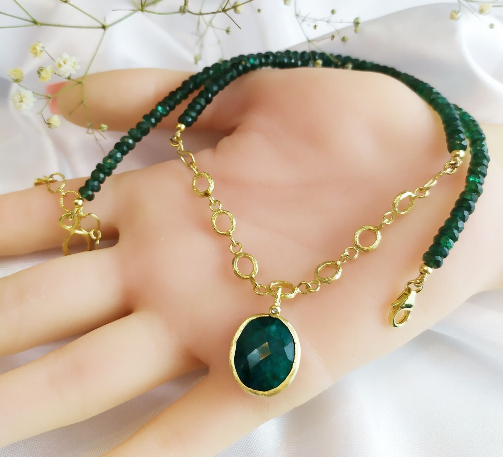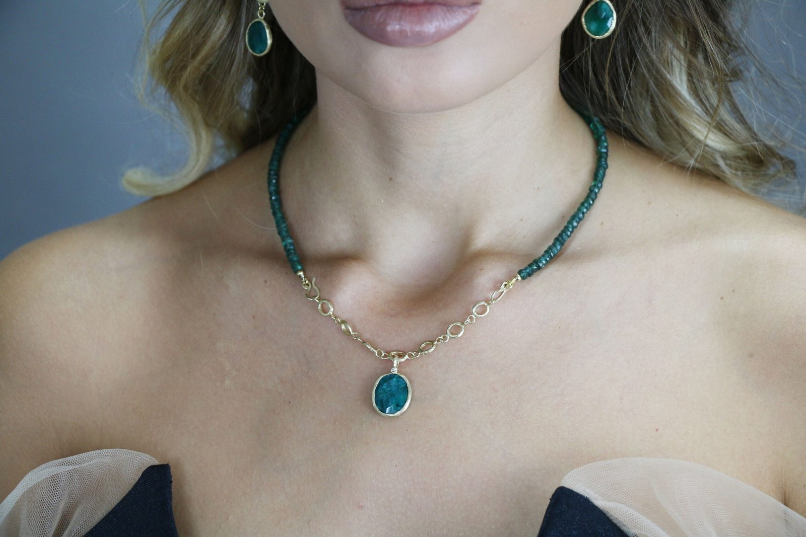 שרשרת גרין אפטייט בשלוב אמרלד אפריקאי .
