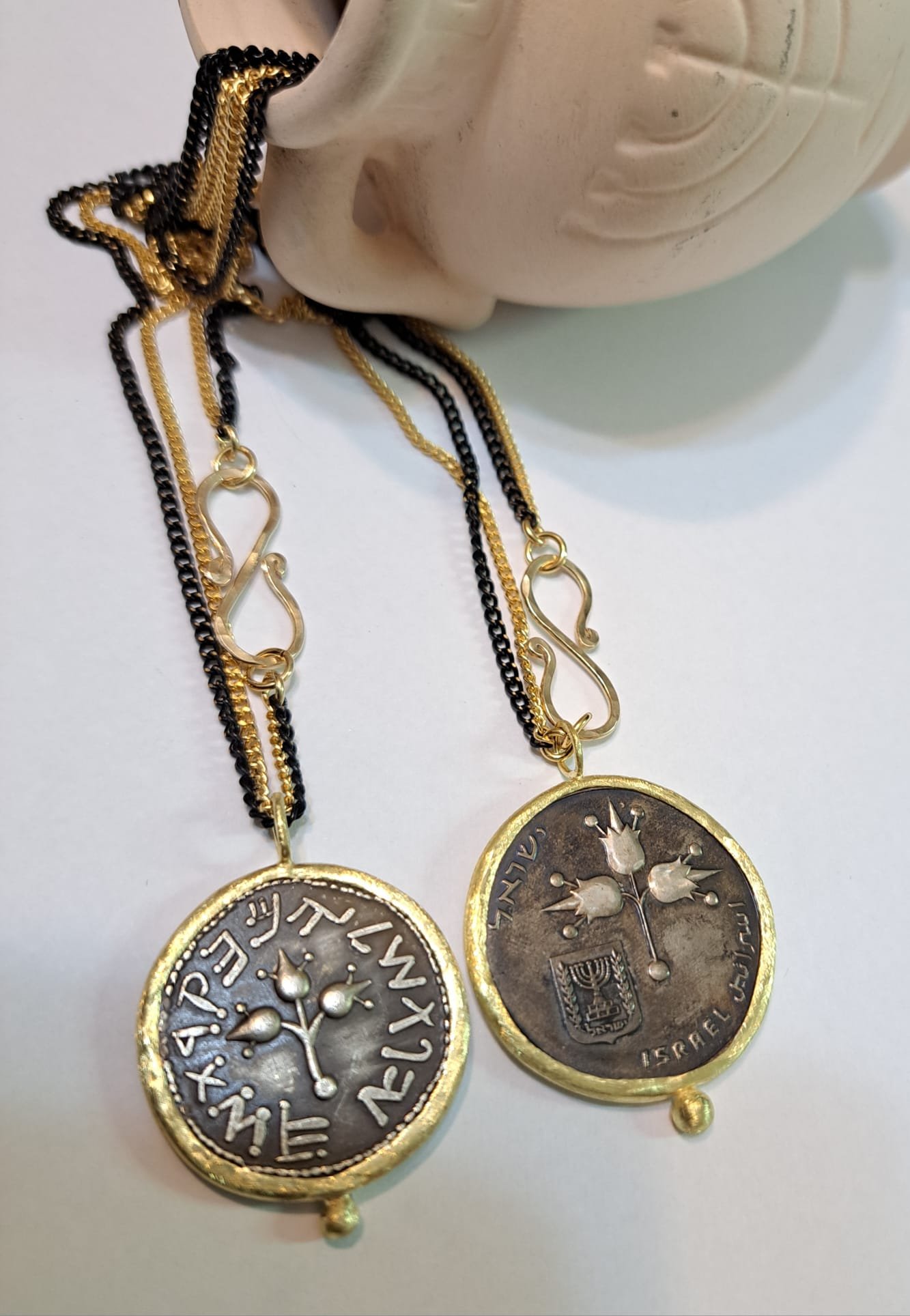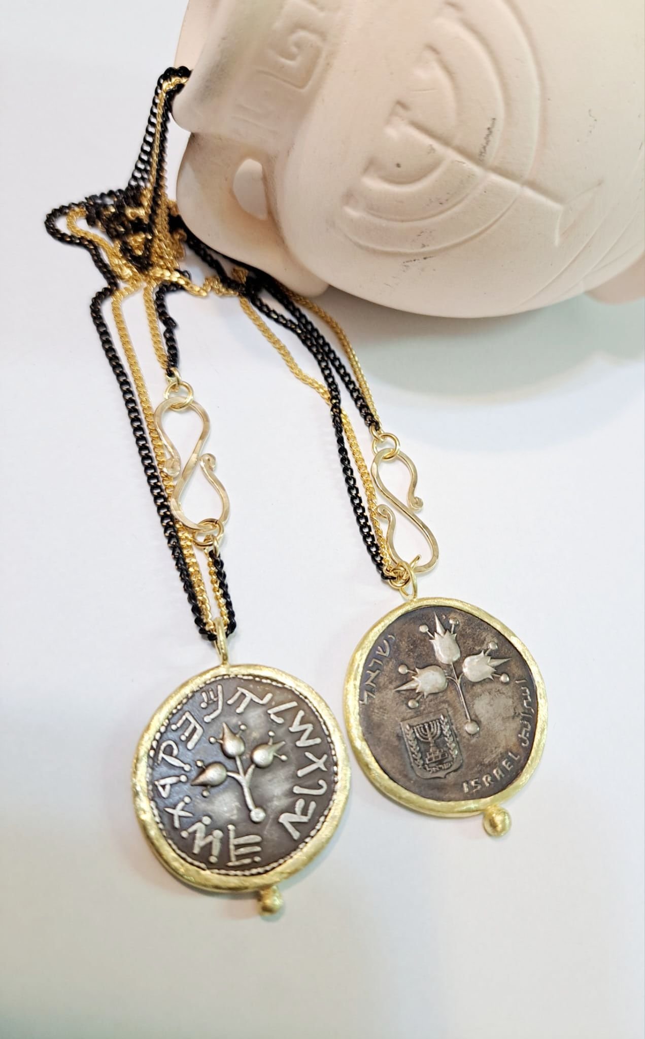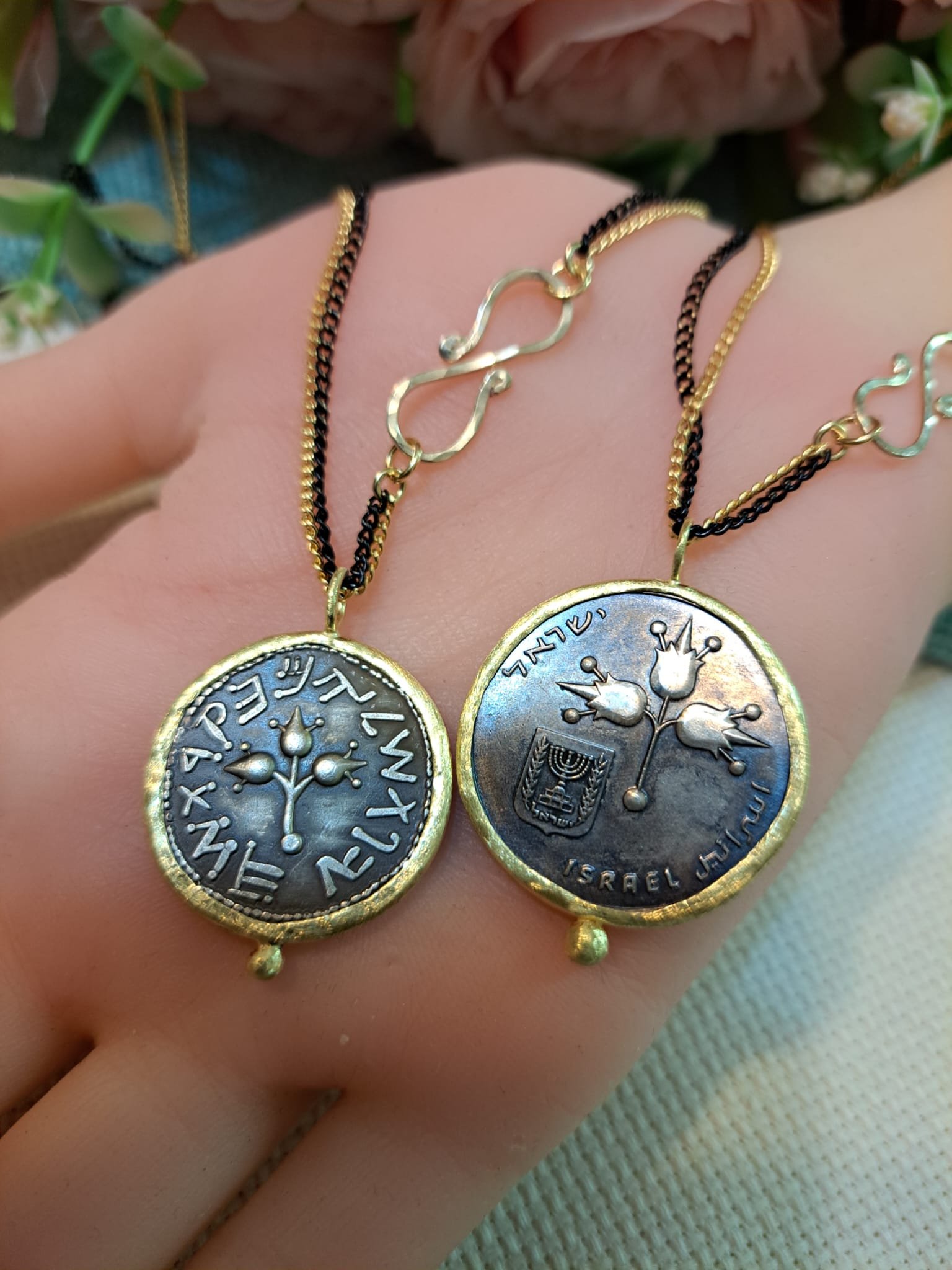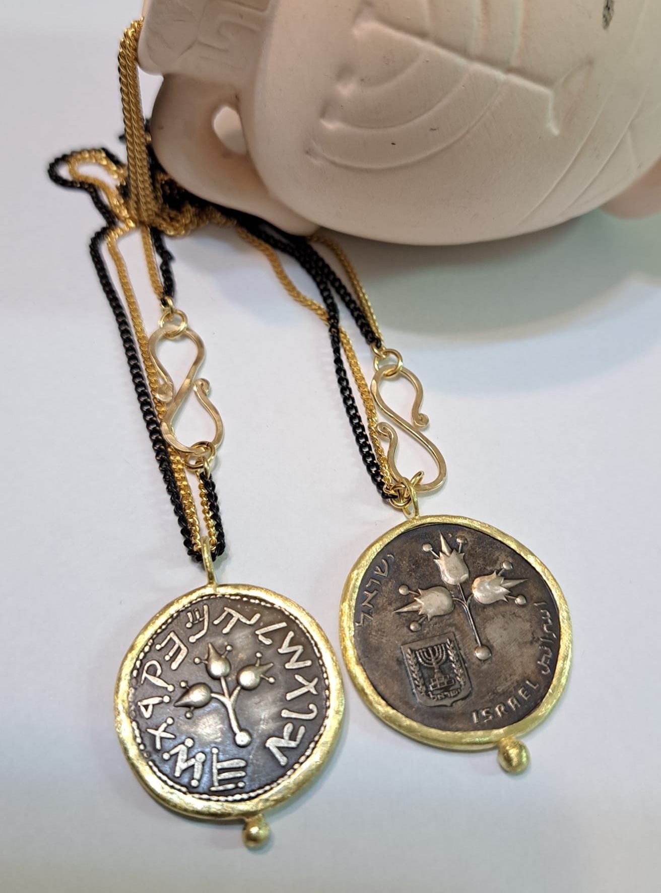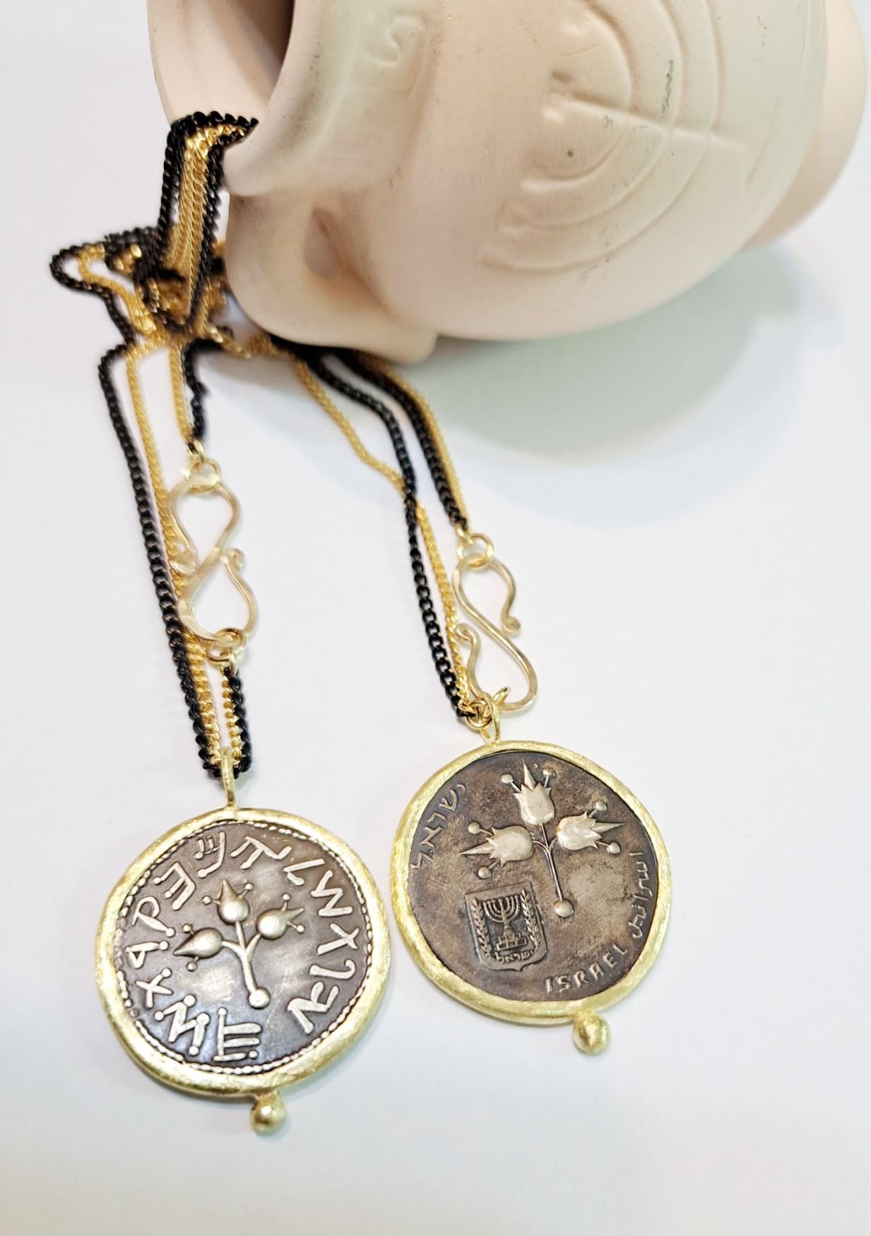 שרשרת ארוכה ומטבע בר כוכבא -רימונים