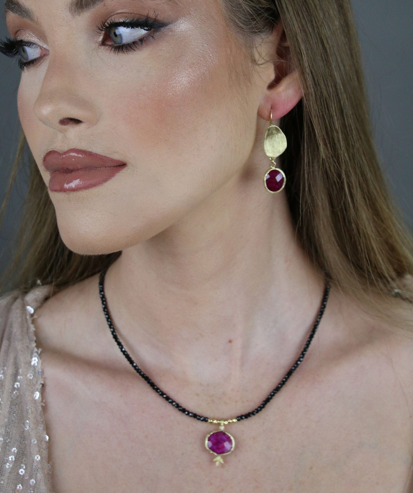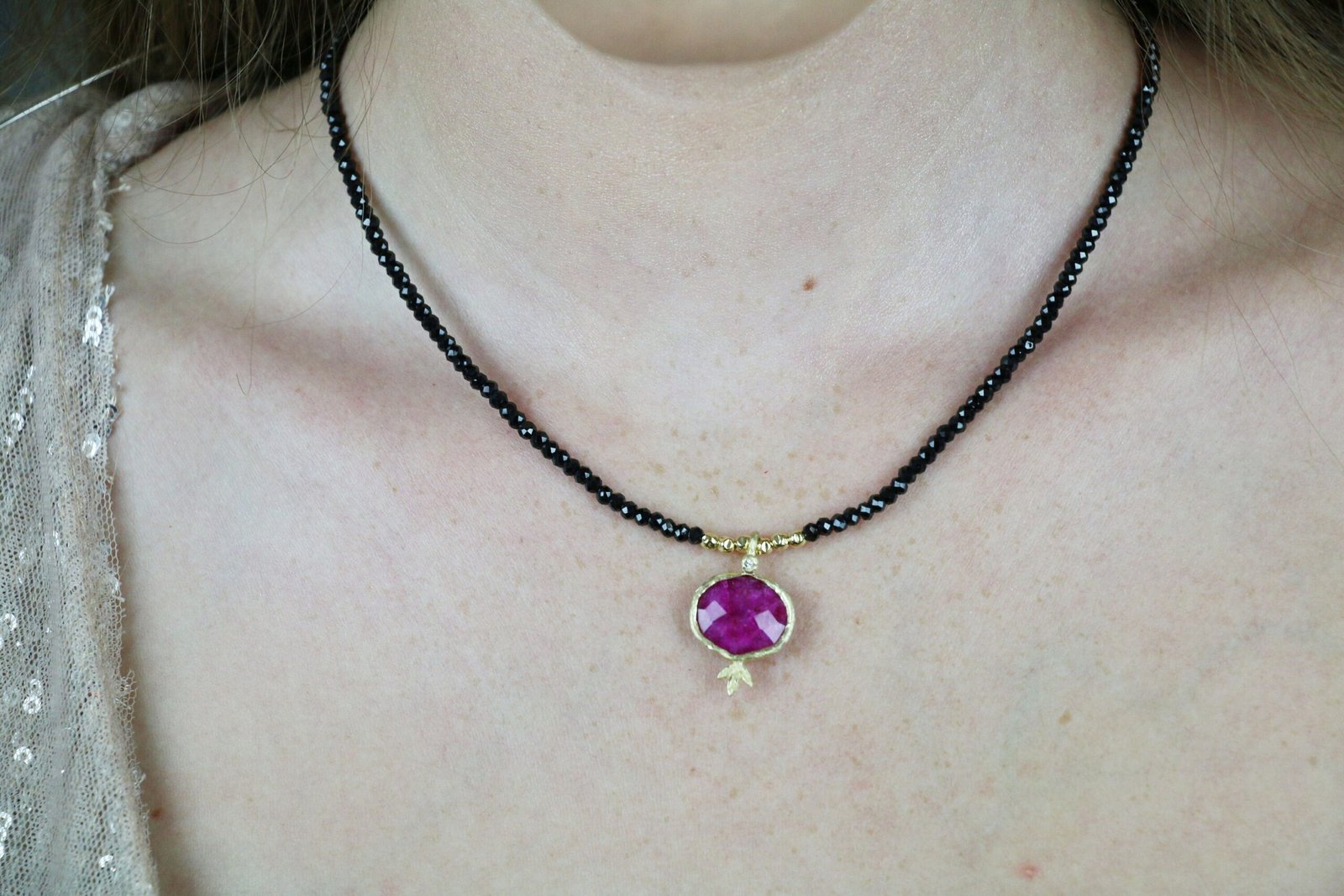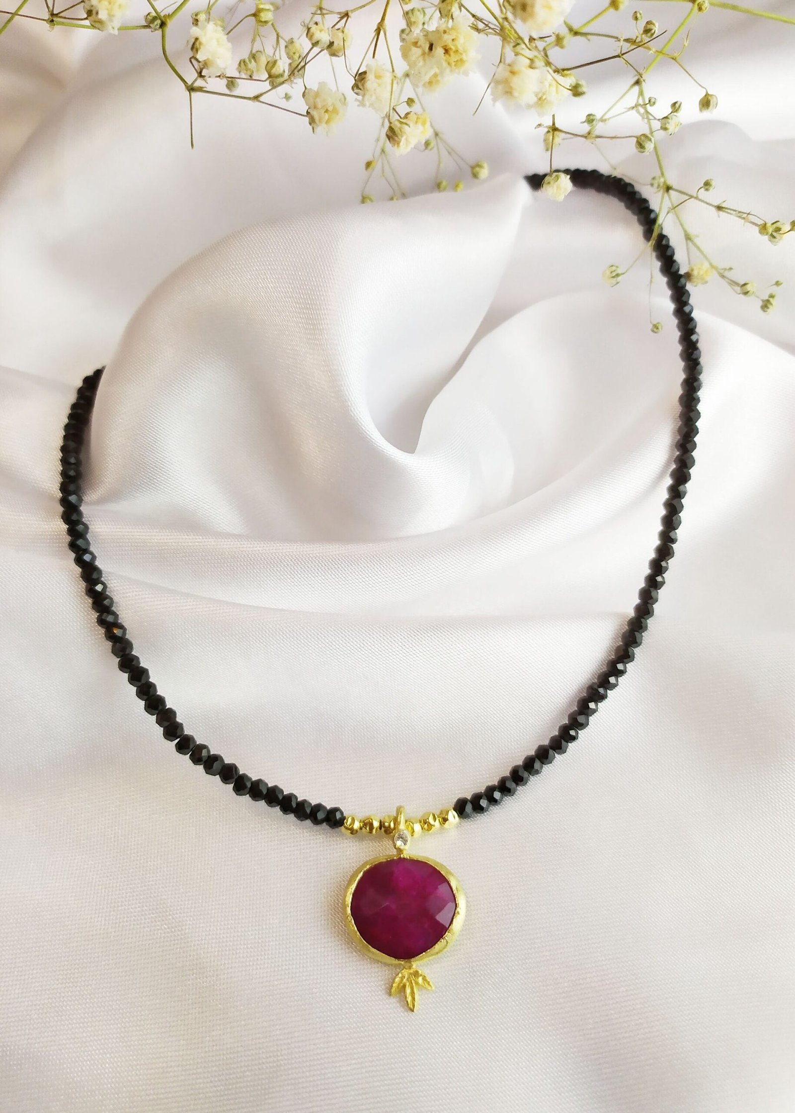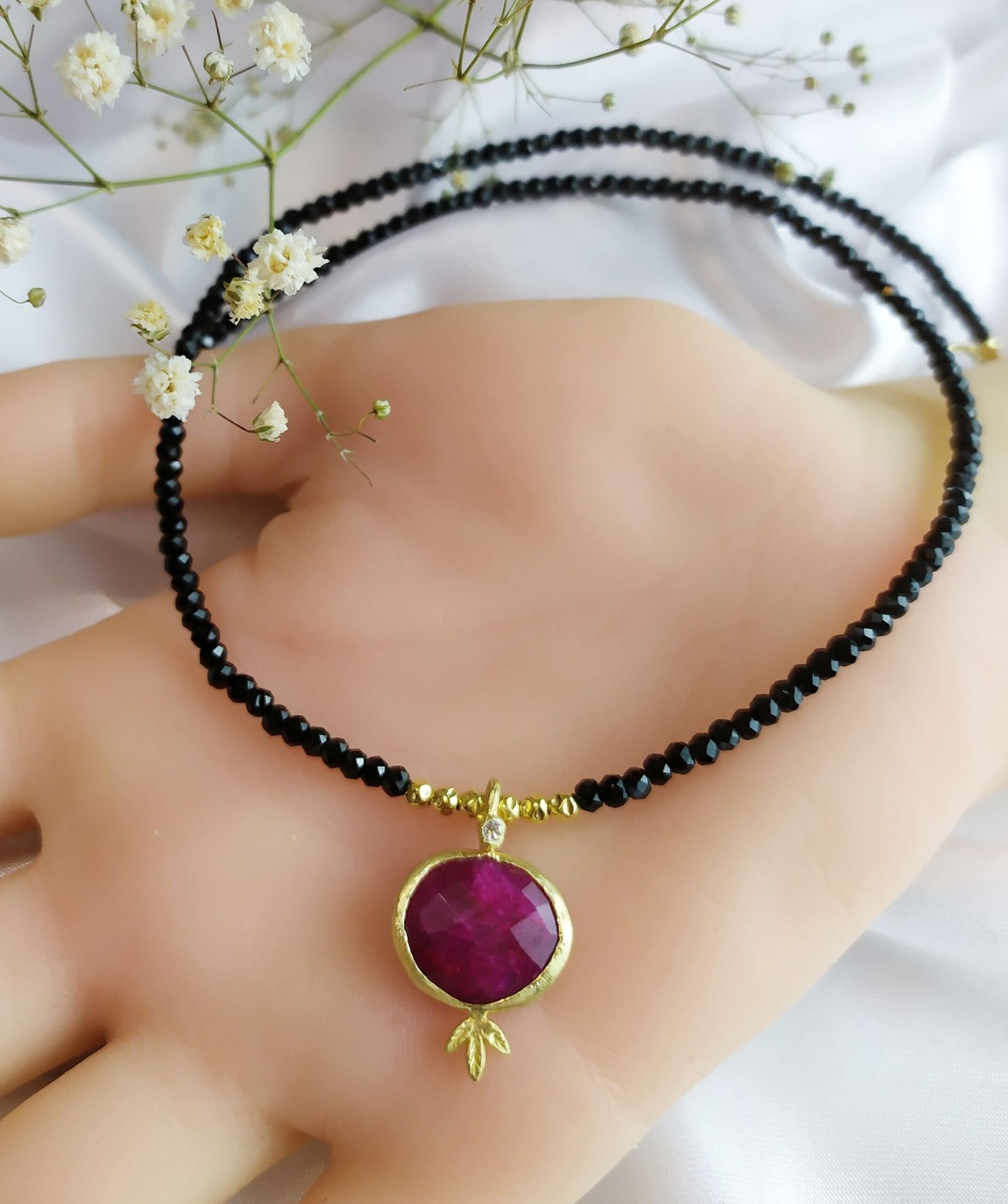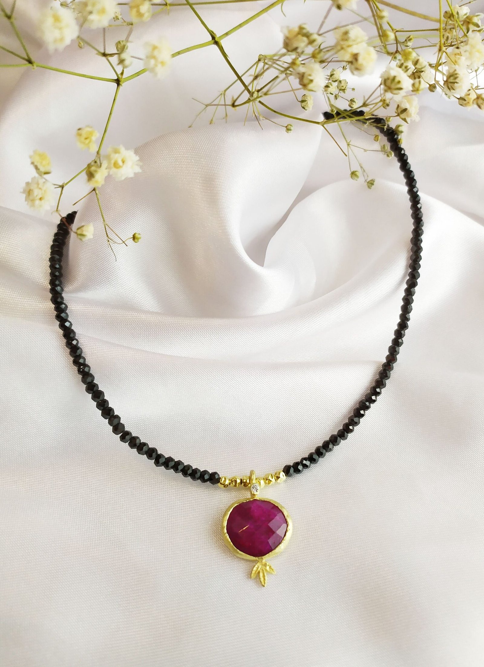 שרשרת אבני חן בלאק ספינאל בשילוב רובי – דגם רימון
