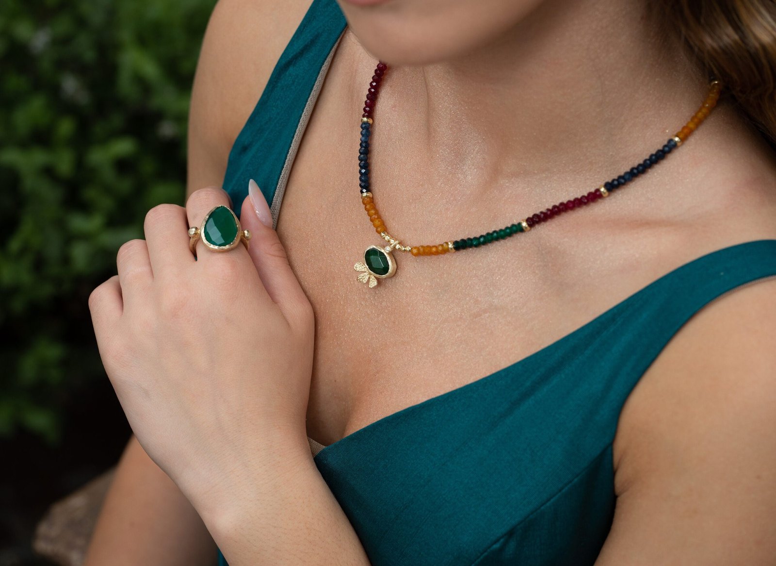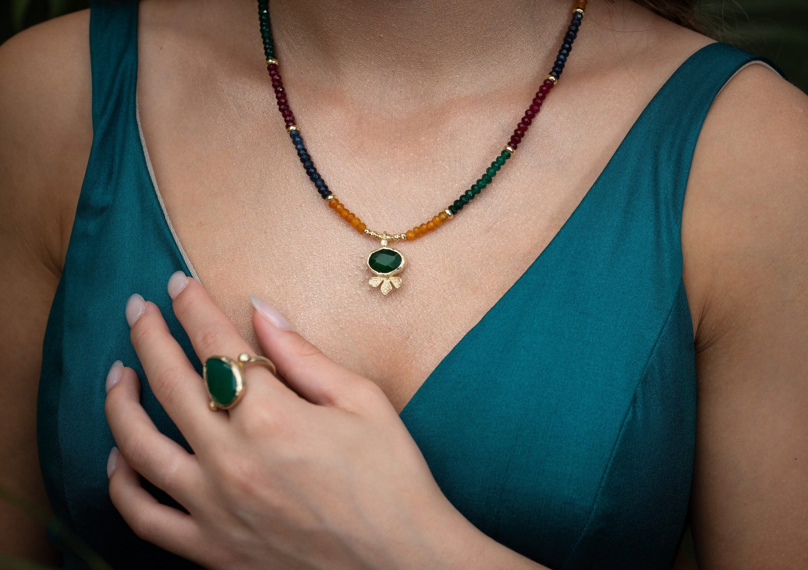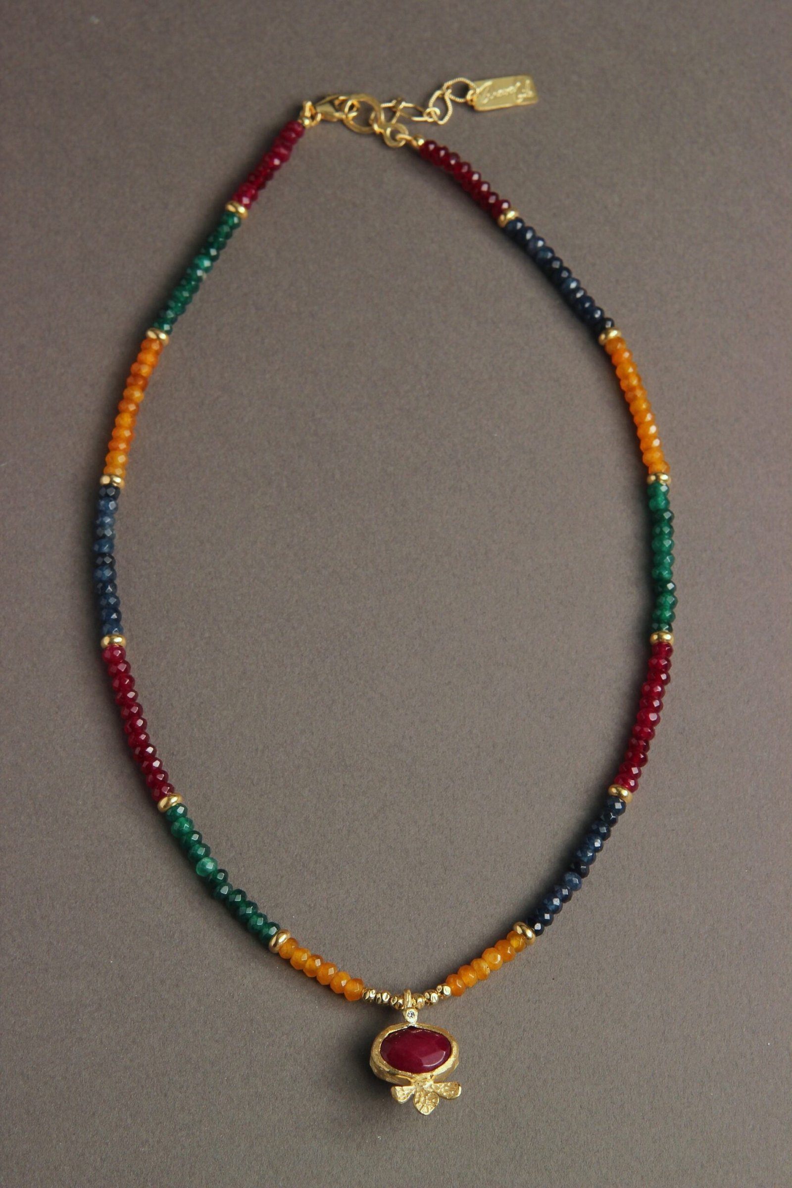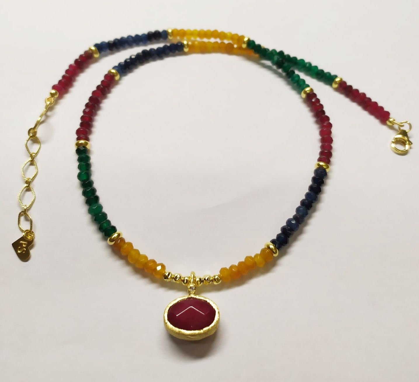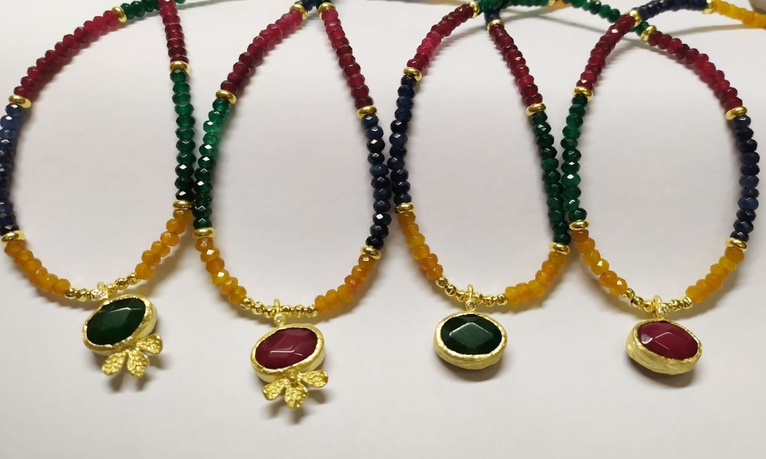 שרשרת צבעונית אטרקטיבית, רובי ג'ייד, אמרלד ג'ייד, ספיר ג'ייד.