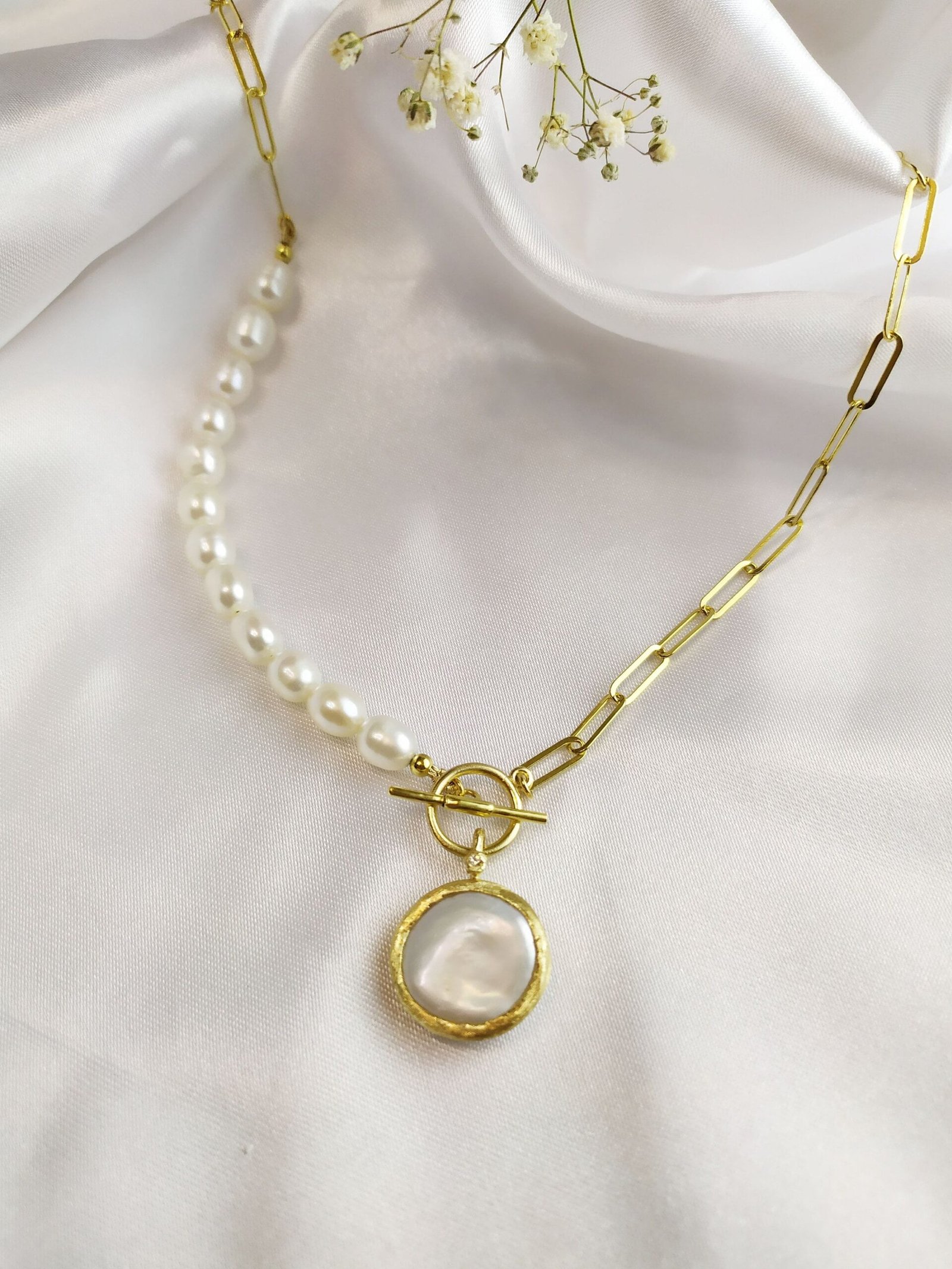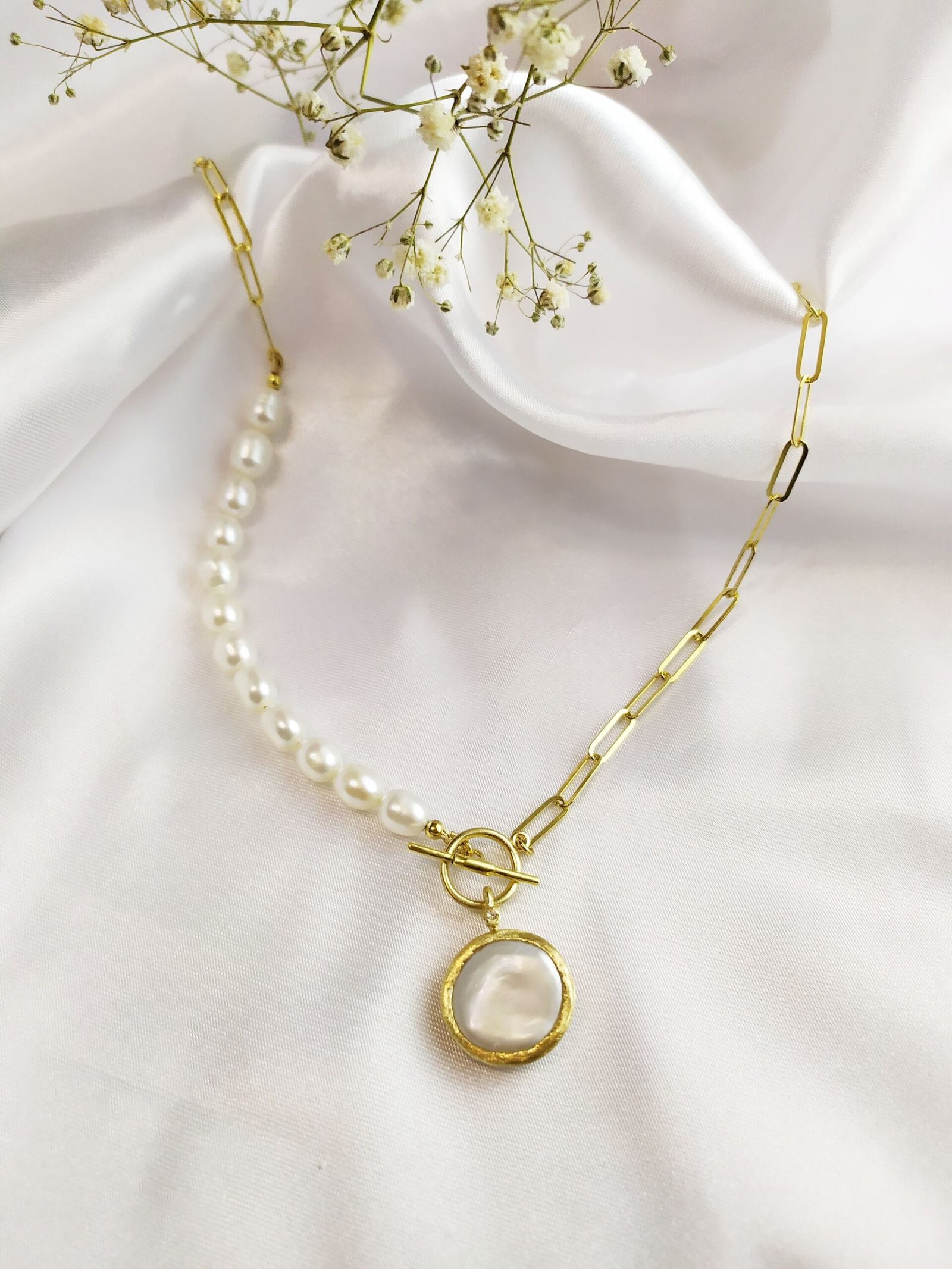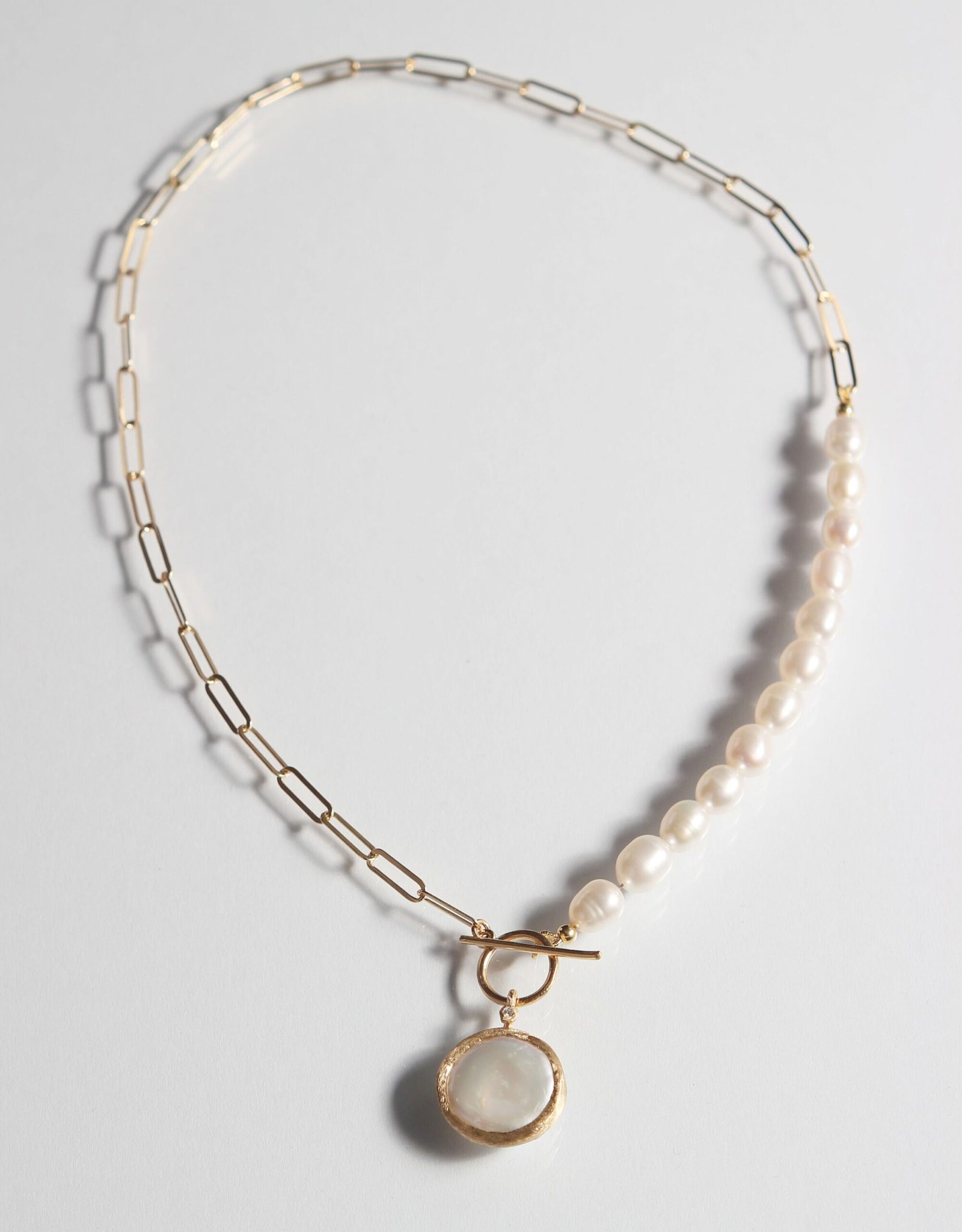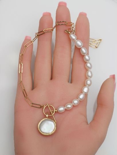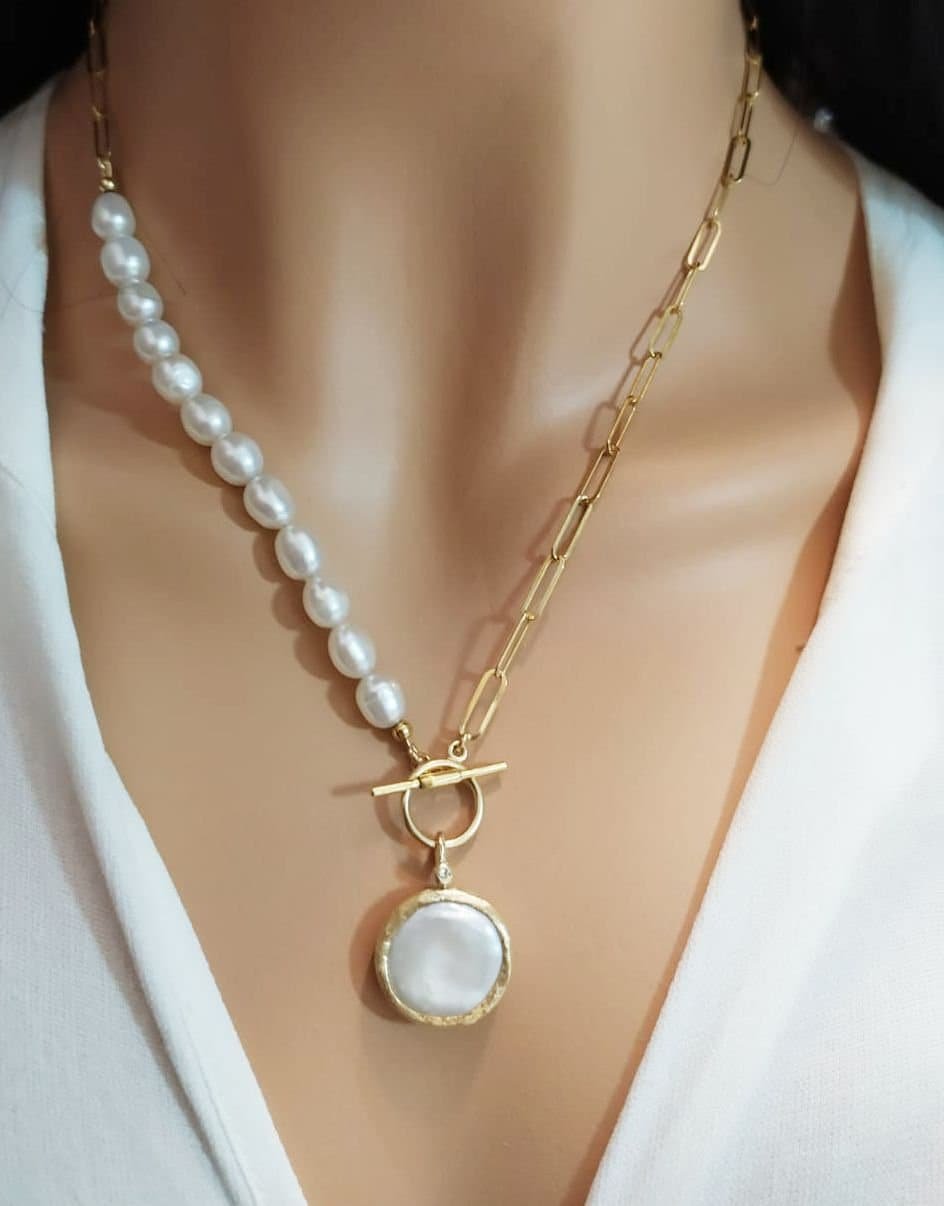 השרשרת עשויה מפנינים אמיתיות .פניני מים מתוקים