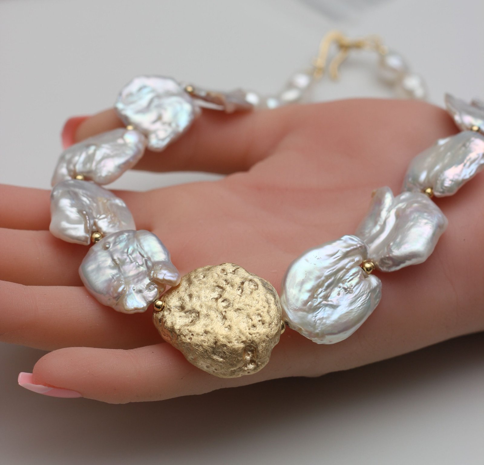 שרשרת עשויה פניני מים מתוקים .