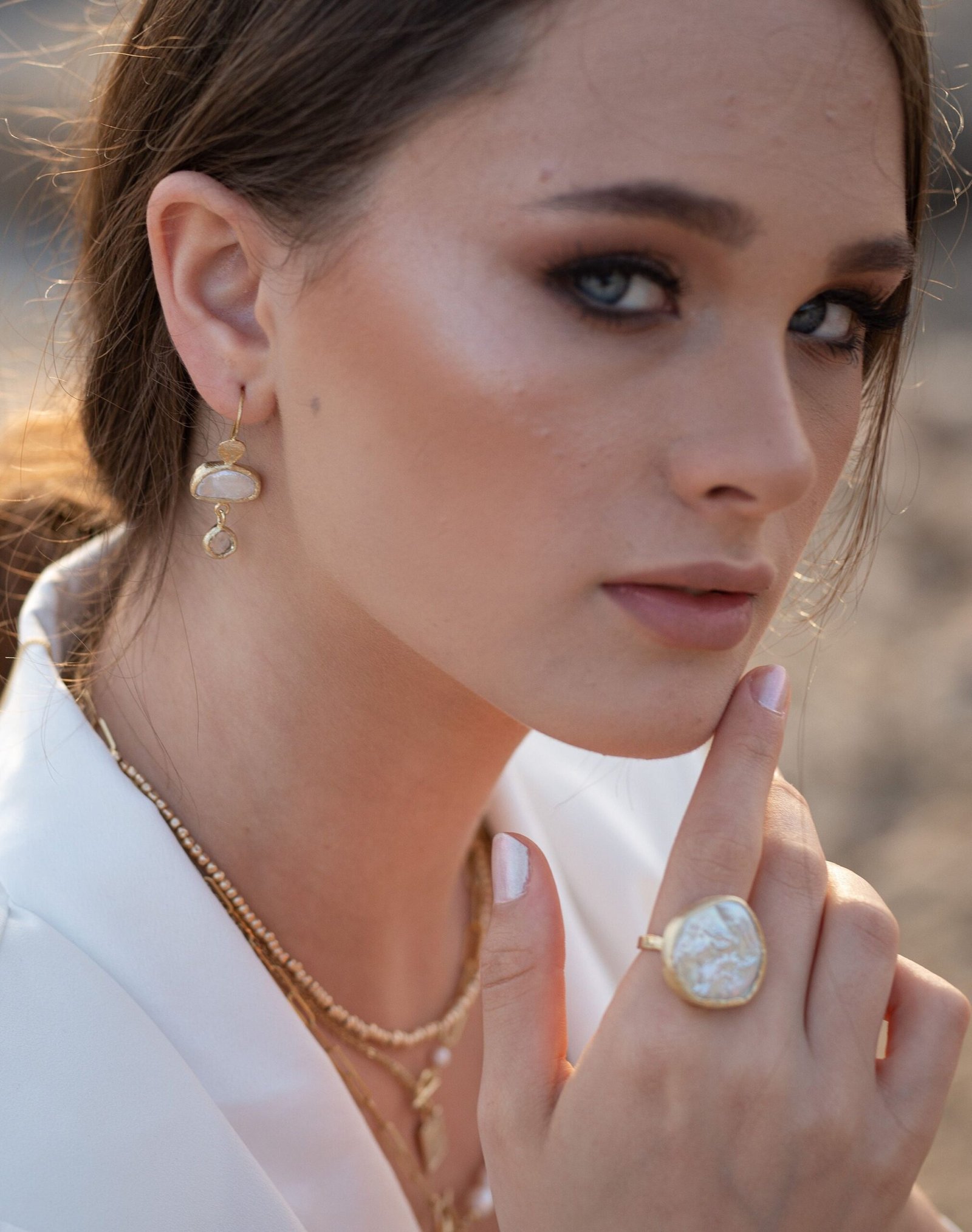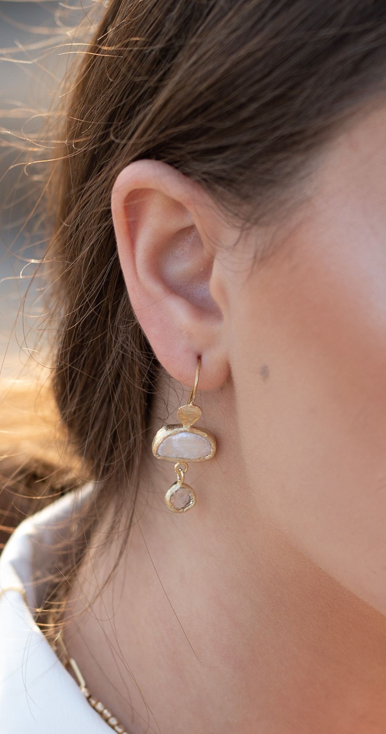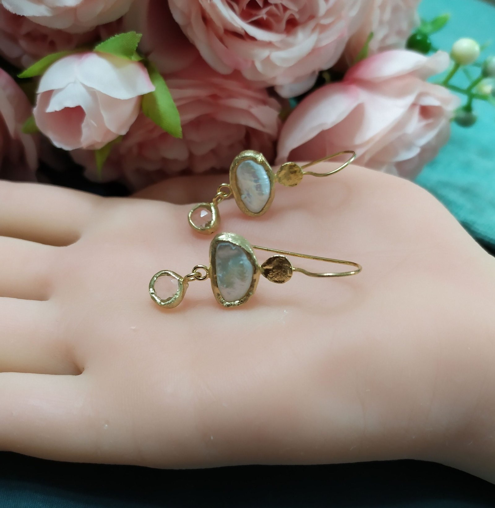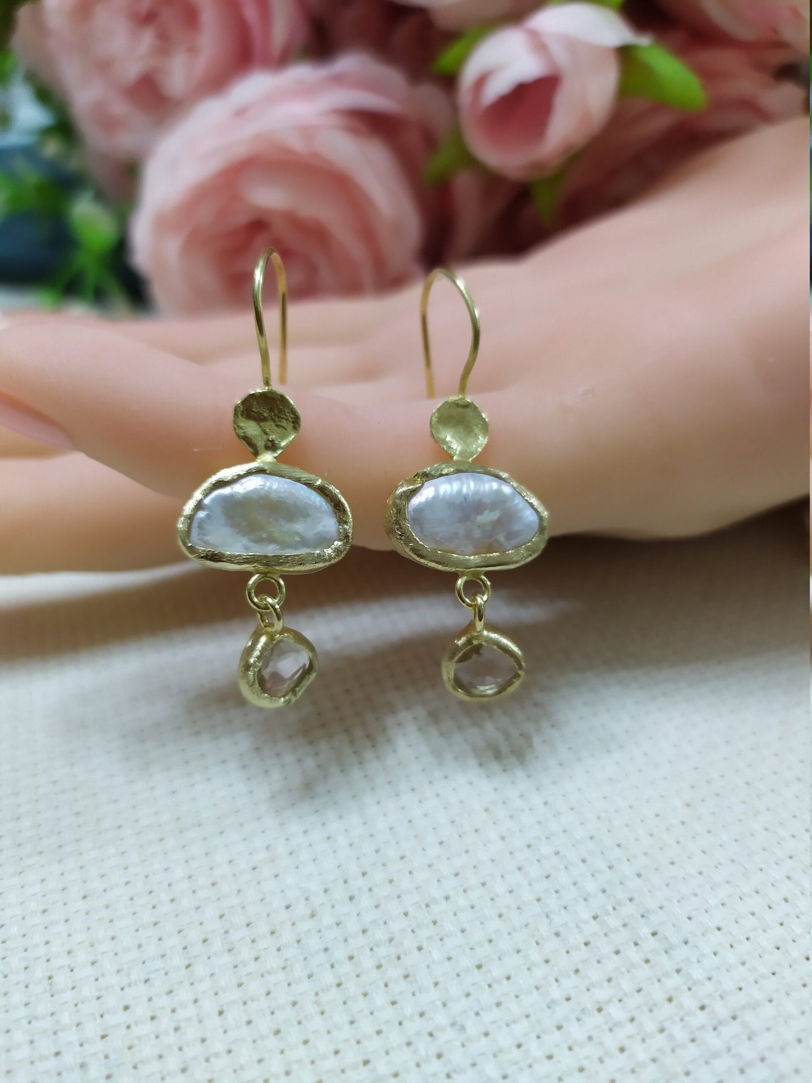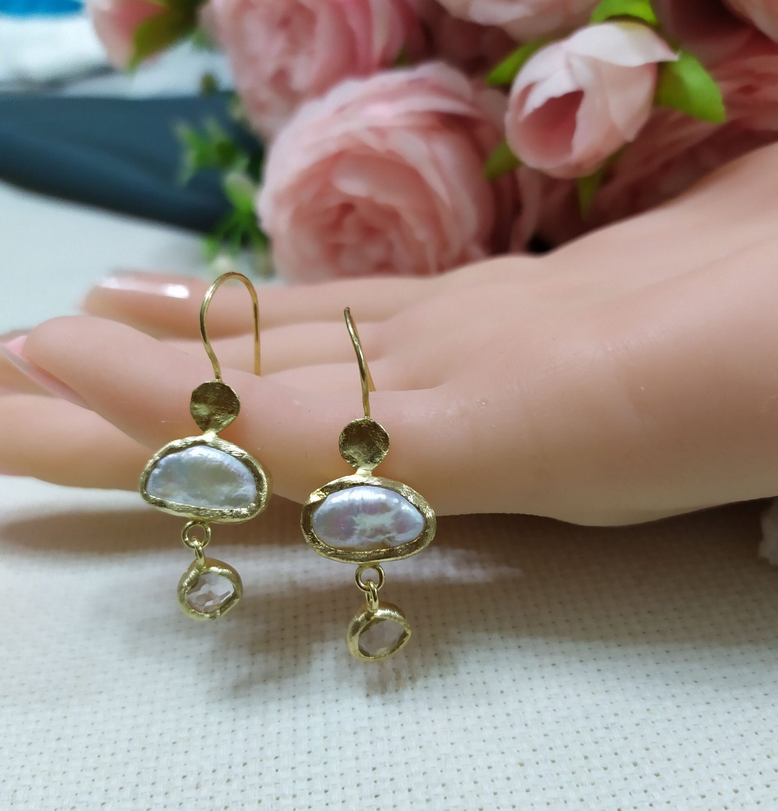 עגילי פנינה וקוורץ